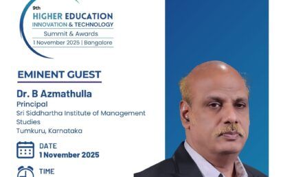 9th Higher Education Innovation Technology Summit & Awards on 01st November 2025 @ Bangalore. EMINENT GUEST DR. B AZMATHULLA PRINCIPAL SRI SIDDHARTHA INSTITUTE OF MANAGEMENT STUDIES TUMKUR. Dr. B. Azmathulla, Principal of Siddhartha Institute of Management Studies (SSIMS), was invited as an Eminent Guest to the 9th Higher Education Innovation & Technology Summit & Awards […]