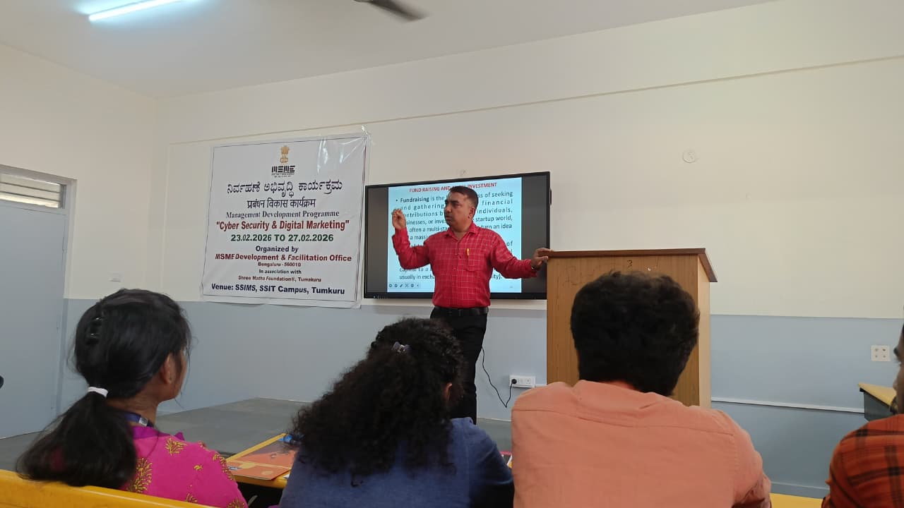 Day- 2 MDP on “cyber security and Digital marketing” in association with MSME,B’lore and shree Matha Foundation(NGO), Tumkur. Topic : Supply Chain Management, Export marketing Management, Tourism Travel management Resource person : Dr. Chandana N R Asst. Professor SSIMS, Tumkur Day- 3 Financial Management, Taxation, GST, Fixed rasing, & Angel Investment. Resource person : Dr. […]