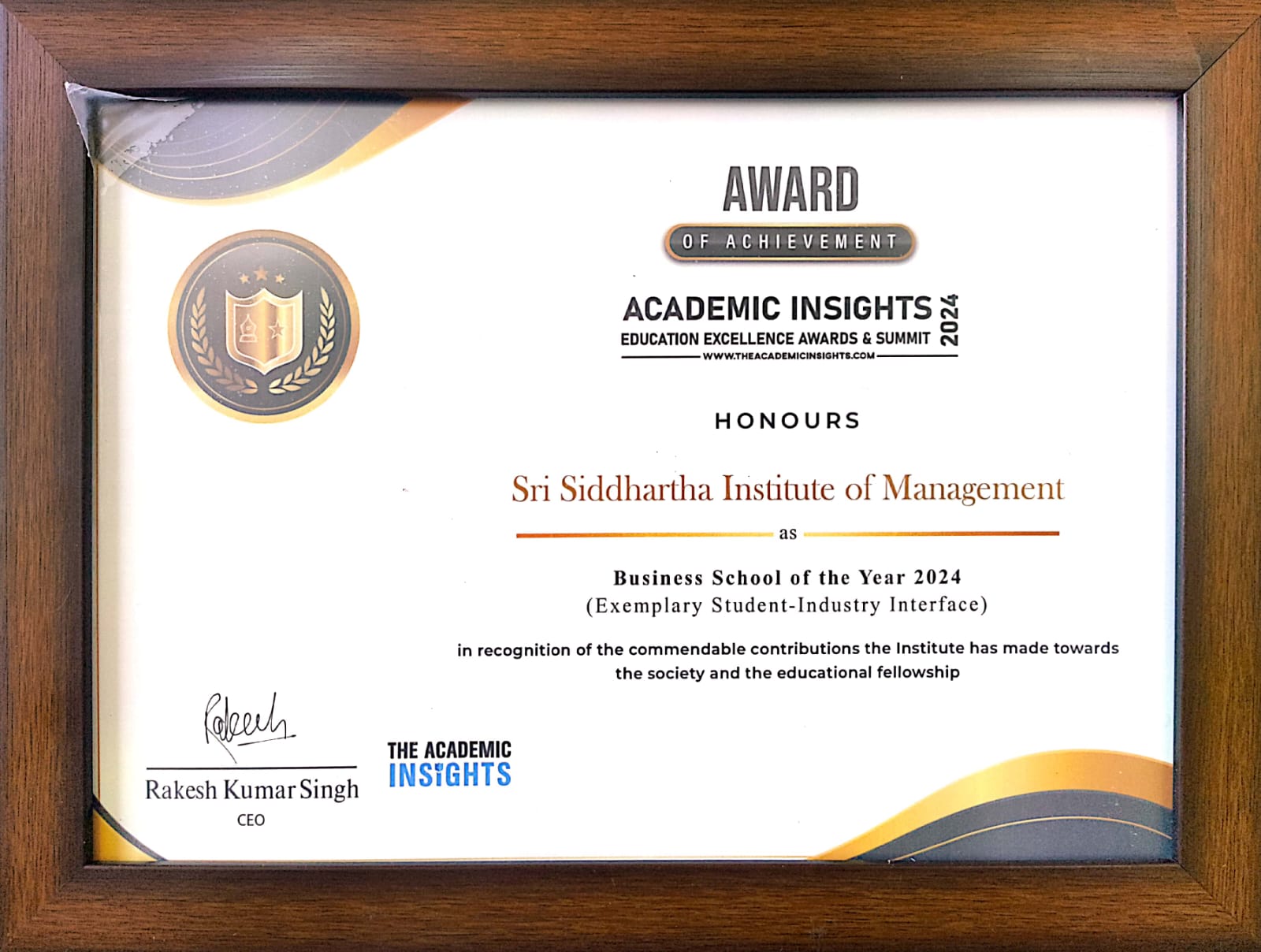 Education Excellence Award-2024 received from Academic Insight, Bangalore. SSIMS Receives Prestigious Academic Insights Education Excellence Award 2024