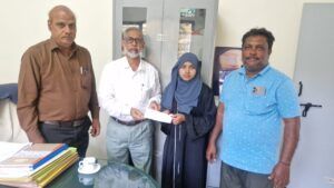Mr. Janab Javid, Trustee and Managing Director, extended Financial support to a first-year MBA student of SSIMS, Ms. Shanaz.