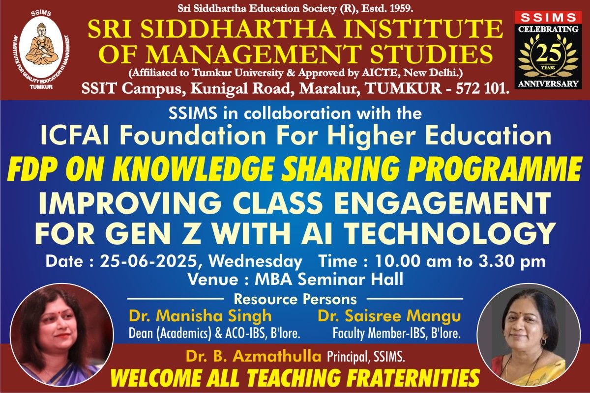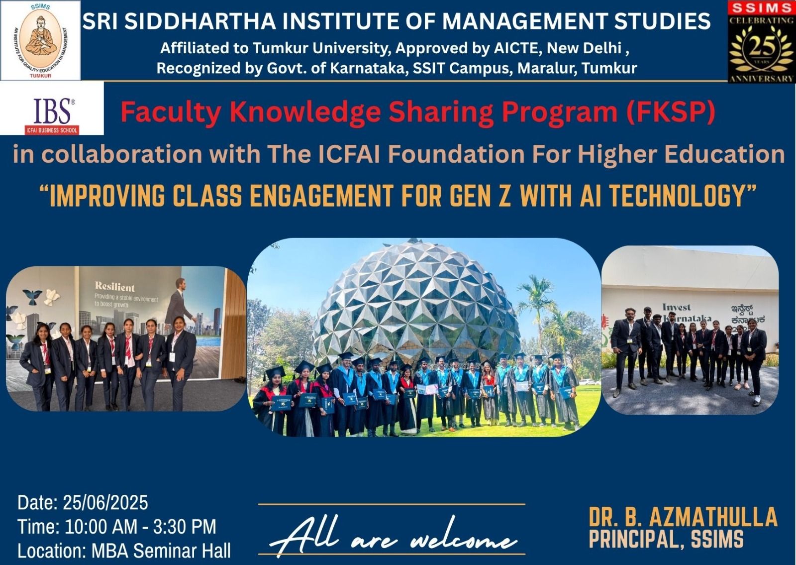 Faculty Knowledge Sharing Program (FKSP), jointly organized by The ICFAI Foundation For Higher Education in collaboration with Sri Siddhartha Institute of Management Studies (SSIMS).
