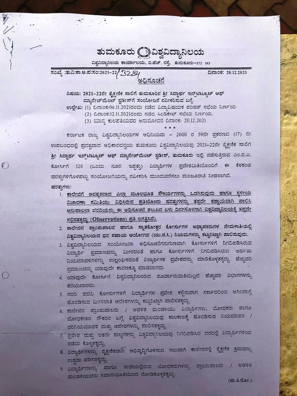 Sri Siddhartha Institute of Management Studies– Affiliation copy 2024-25