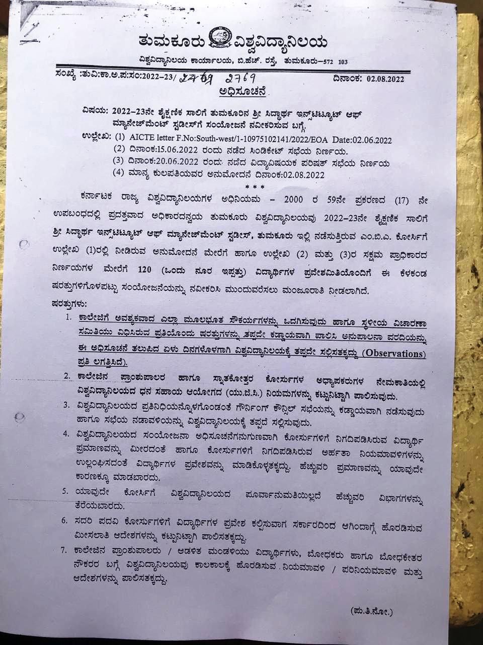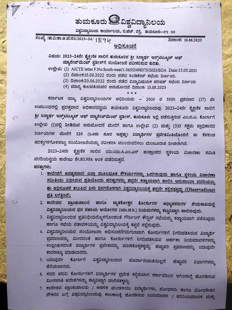 Sri Siddhartha Institute of Management Studies– Affiliation copy 2024-25 SSIMS-