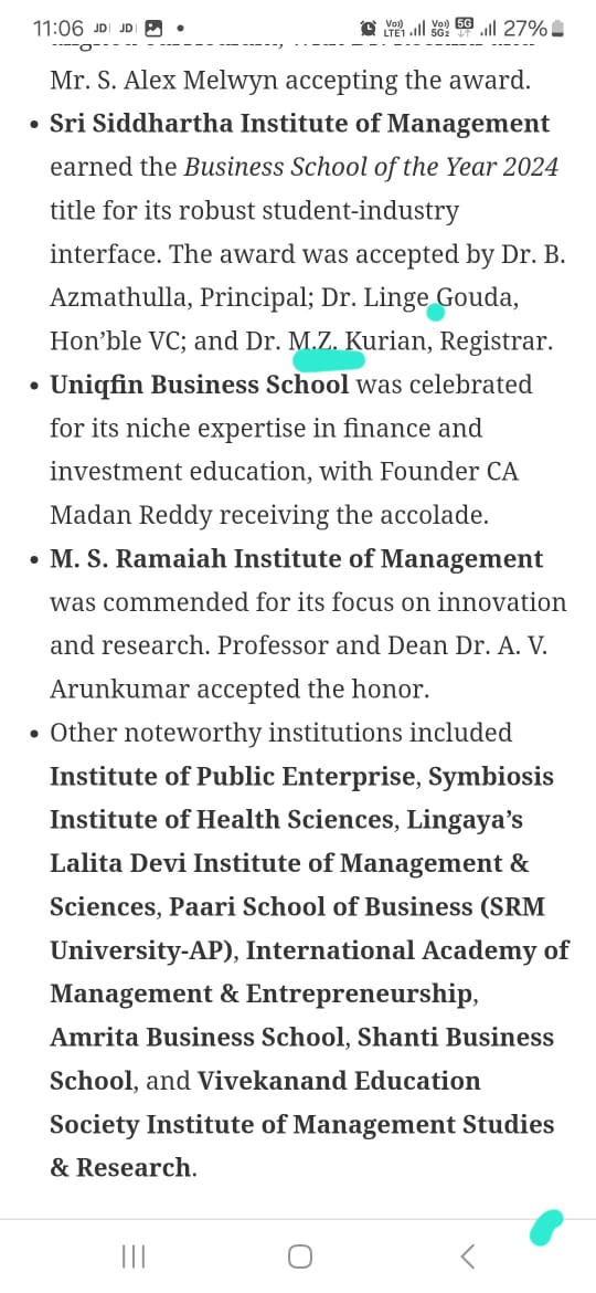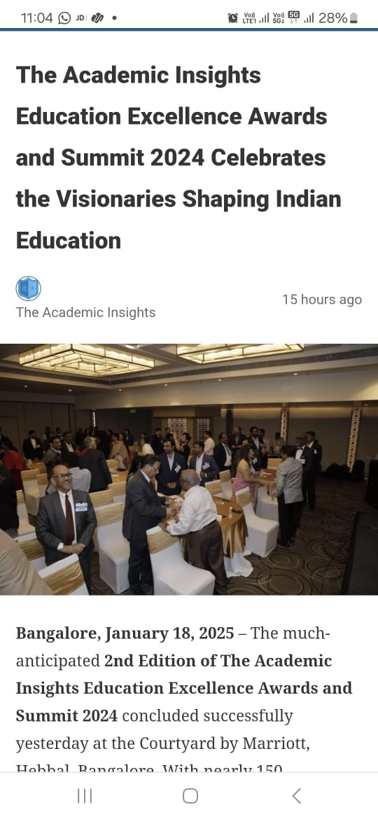 SSIMS Honours from Academic Insights Education Excellence Award and Summit 2024 @ Bangalore, on 18-01-2025