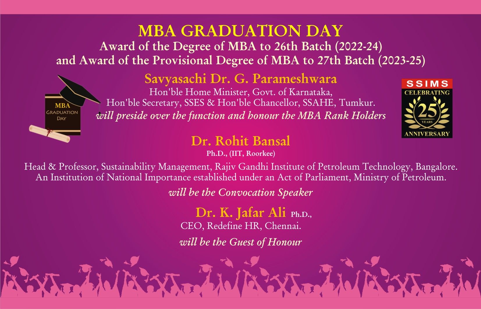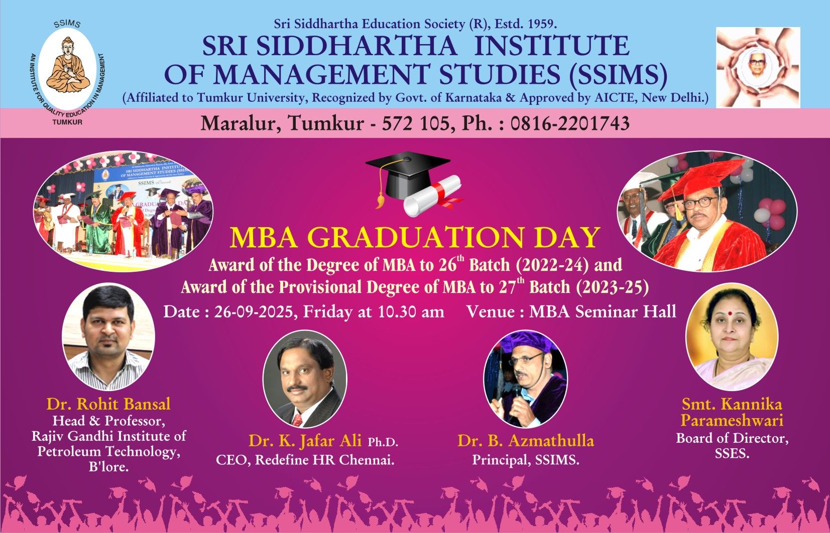 SSIMS – MBA GRADUATION DAY 2025 Award of the Degree to MBA 26th Batch Award of the Provisional Degree to MBA 27th Batch ON 26/09/2025